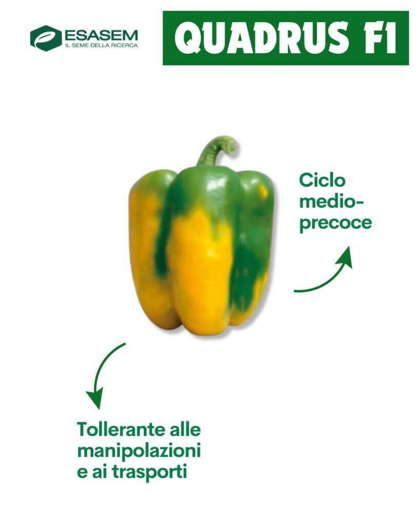 Peperone Iride F1: peperone giallo mezzo lungo con frutti di grande pezzatura e ottimo peso specifico.La pianta, di medio-alta vigoria, offre una produttività costante e una buona allegagione durante tutto il ciclo.I frutti dal colore verde scuro che virano a giallo brillante, sono perfetti per la GDO e godono di