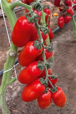 Midi elongated tomato for single or cluster harvesting. The plant has strong vigor with regular internode. Fruits are organized in numbers of 10-12 for cluster inserted in a strong stem. Color at ripe is perfect red. High yield and production. Fruit weight is 60- 90 gr.