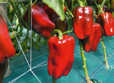 Pimiento lamuyo rojo de ciclo medio-precoz y planta vigorosa, caracterizado por un alto cuajado incluso en condiciones de estrés térmico y una alta productividad. Apto para cultivo en ambiente protegido, con trasplantes de octubre a marzo y para ciclos de primavera. Color rojo intenso uniforme, cuadrilobulado, pared lisa y pulpa gruesa, lo que garantiza una larga conservación de los frutos, tanto en la planta como después de la cosecha. Los frutos, de gran tamaño con cáliz plano, se caracterizan por un alto peso específico, con un peso promedio de 500-550 g, una longitud de 16-18 cm, un hombro de 10-12 cm y un pedúnculo robusto.