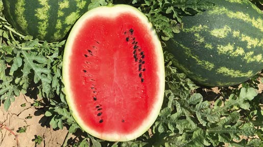 Sandía híbrida tipo Crimson Sweet. Los frutos tienen una forma ovalada con un excelente color externo e interno. La carne es dulce y roja. Frutos con un peso promedio de 12-14 kg con una forma ovalada uniforme. Las plantas tienen un fuerte vigor con buen cuaje de fruto y alto rendimiento. Trasplante recomendado en invernadero, túnel pequeño y aire libre.