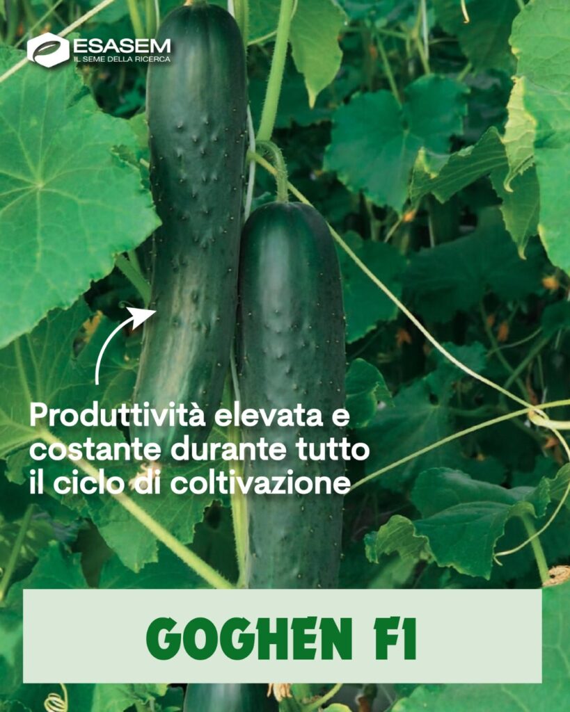 Cetriolo “slicer” partenocarpico, con frutti cilindrici, regolari da 20–22 cm, dal verde scuro brillante e con ottima spinatura.