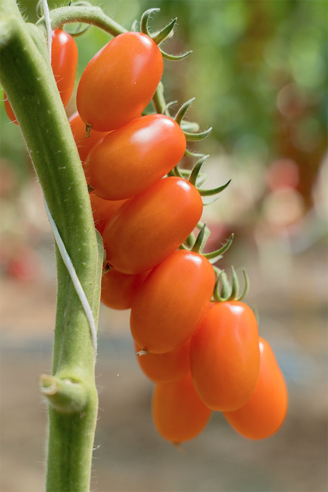 Pomodoro “mini-plum” di colore arancione, dall’ottimo sapore e dolcezza, con assenza di acidità. Frutto cilindrico periforme del peso di 20 g, con apice stillare ben arrotondato, di notevole regolarità nel grappolo e tra i vari palchi. Pianta di media vigoria con fogliame aperto ed internodo corto. Con un ciclo precocissimo, può essere utilizzato nelle diverse epoche di trapianto.