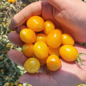 Pomodorino giallo a pianta determinata di vigoria medio alta, molto rustica e ciclo molto precoce. La fertilità è ottima e la maturazione concertata. La pianta produce frutti di forma ovale-leggermente appuntita del peso di 20-22 g con elevato grado brix (> 7.5 °Bx) e dal sapore gradevole. Frutto di colore giallo brillante e persistente, sia internamente che esternamente. Il colore risulta attraente per il mercato fresco e perfettamente idoneo per la trasformazione industriale. Ottima la tolleranza alle spaccature.